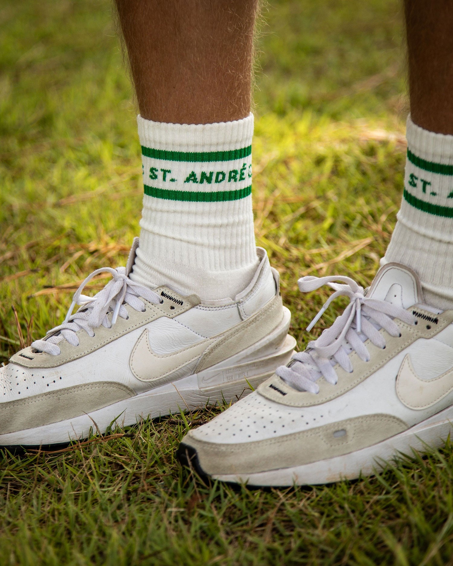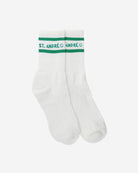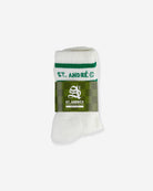 Crew socks made to land just slightly above the ankle. They are not dyed so it has a very slight natural egg shell color.